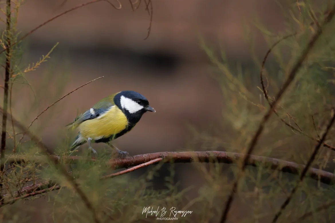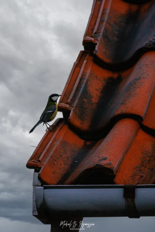 Musvitten โ Den akrobatiske ener Ingen dansk have uden Musvitten (Parus major). Den gule mave og det sorte hoved gรธr den let at kende. Den er lynhurtig og ofte en smule frรฆk ved foderbrรฆttet. Jeg fangede den bรฅde i de grรธnne grene, men ogsรฅ i et mere dramatisk รธjeblik pรฅ toppen af det rรธde tegltag med den tunge himmel som baggrund. Det giver en fantastisk kontrast mellem fuglens klare farver og de rustikke omgivelser.