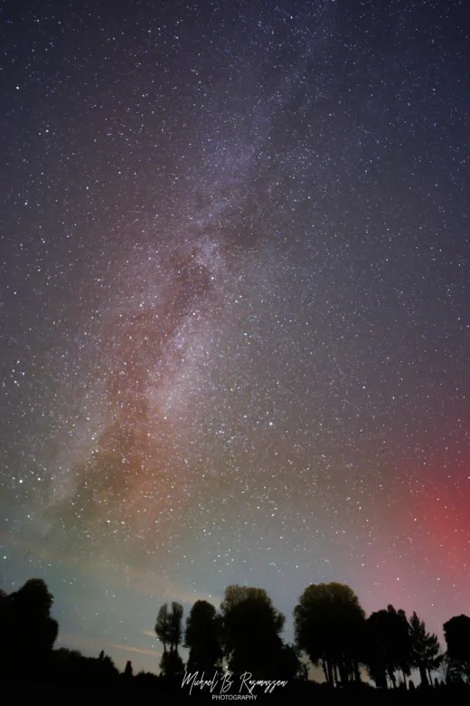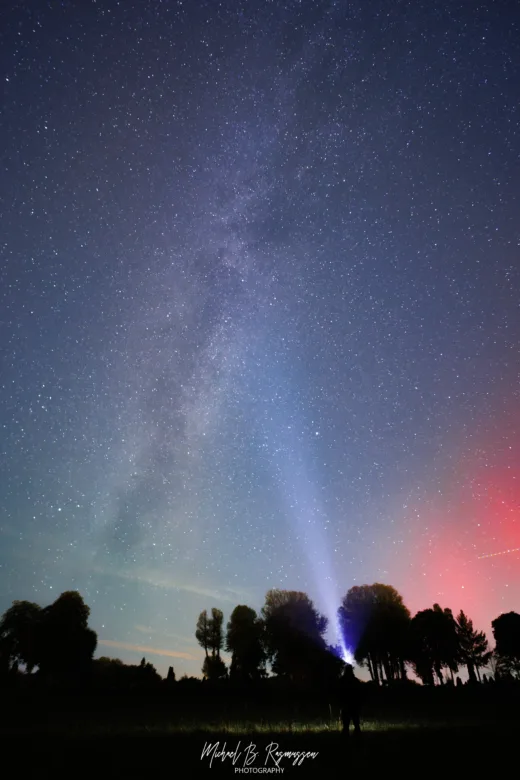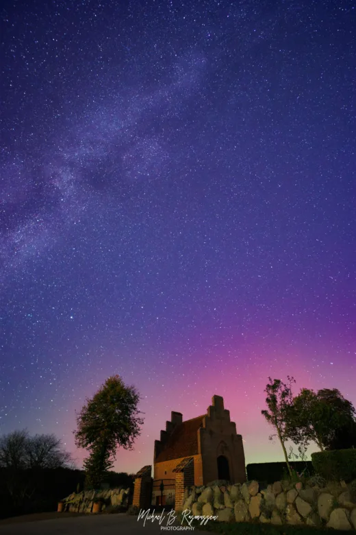 Sjældent får man lov at opleve en aften, hvor himlen overgås i skønhed. Men en nylig nat ved Herlufsholm Kostskole og kirkegård blev vi vidner til et enestående himmelsk skue, da Mælkevejens glødende bånd mødte nordlysets dramatiske farver.