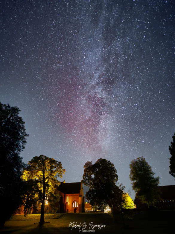 Disse billeder er et vidnesbyrd om, hvor fantastisk mørk himlen stadig kan være, selv i det sydlige Danmark. Herlufsholm, med sin historiske arkitektur og de gamle træer, dannede den perfekte, jordnære kontrast til kosmos.